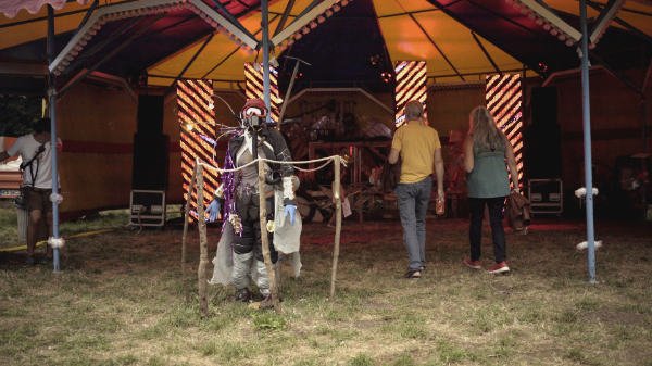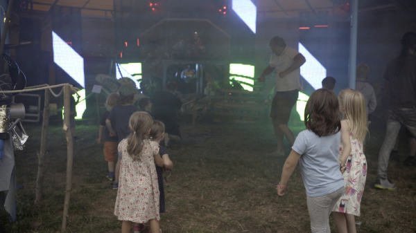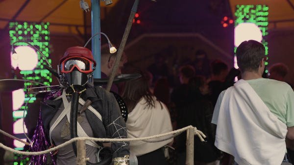 Mir war es ein Anliegen, die Transformation des Publikums, welche sich nach der Corona-Pause 2022 abzeichnete, durch eine künstlerische Intervention zu begleiten und abfedern. Das Festival erhielt in diesem Jahr zum ersten Mal eine auf junges Publikum zugeschnittene DJ-Stage, die einen klaren Kontrast zu dem auf Indie, Jazz und World-Musik fokussierten Programm der Vorjahre bildete. Ich entwarf ein Bühnendesign in postapokalyptischer Optik, dass auch solchem Publikum eine Zugänglichkeit ermöglichte, die sich mit dieser Musik noch nicht aktiv auseinandergesetzt hatten. Die spielerische Ausstellung wurde durch reale Informationen über Ressourcenverbrauch kontrastiert.