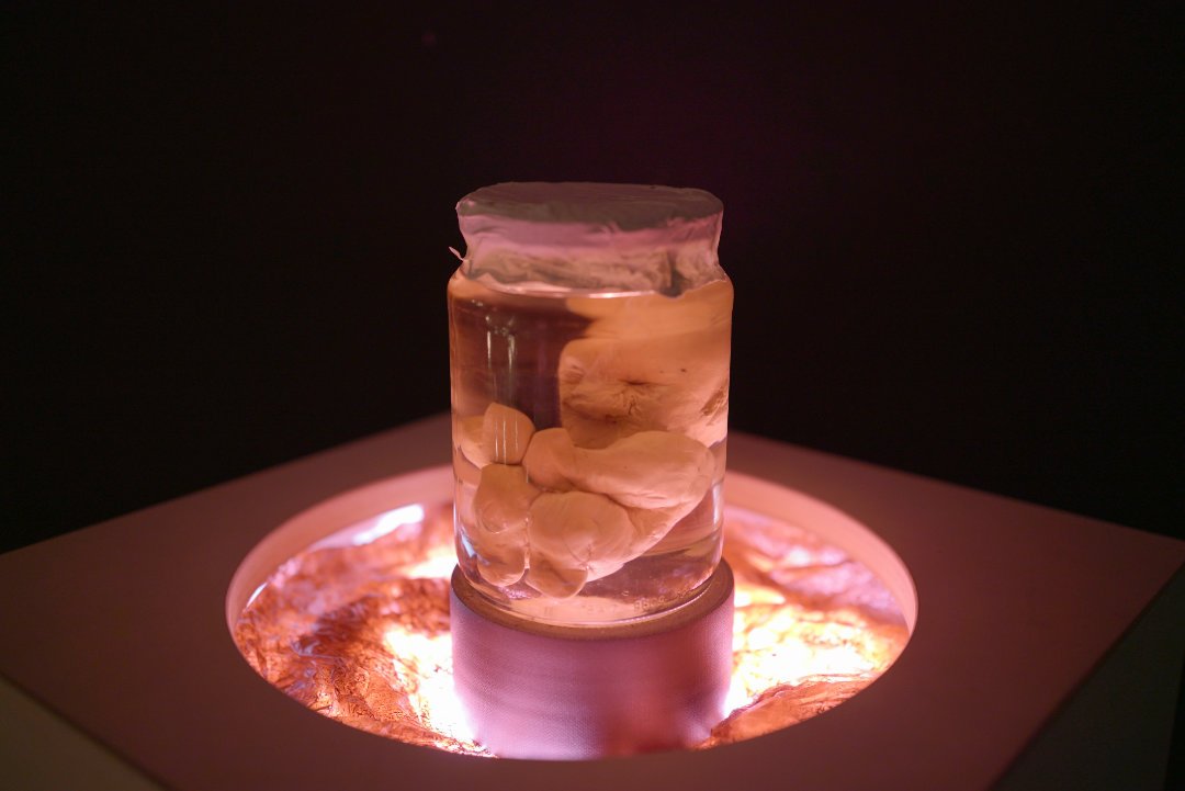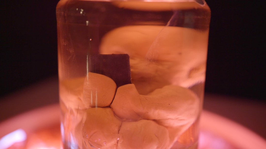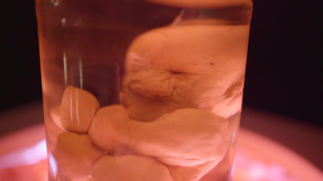 Embryo mit Handy eingemacht in Öl